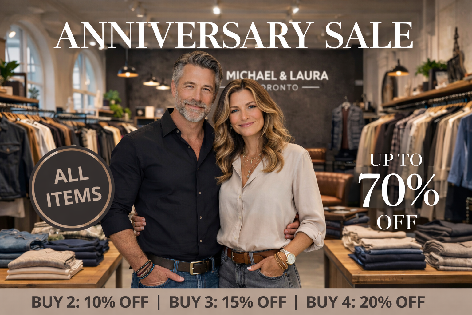 Enjoy up to 70% off the entire store and explore timeless styles designed to bring comfort, confidence, and effortless elegance to your everyday wardrobe. From elevated essentials to refined statement pieces, every item is part of this special anniversary event.